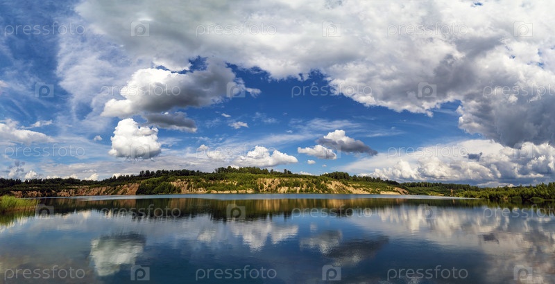 Водный пейзаж с облачным небом над Пугаревскими каменоломнями. Всеволожск. Ленинградская область
