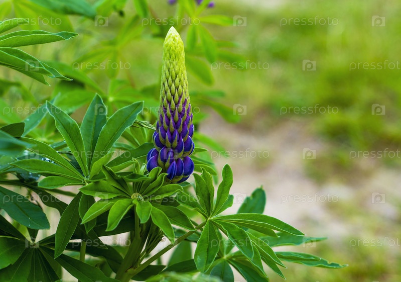 Фиолетовый цветок люпина крупным планом рано утром