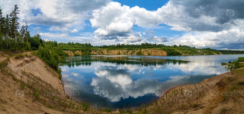 Водный пейзаж с облачным небом над Пугаревскими каменоломнями. Всеволожск. Ленинградская область