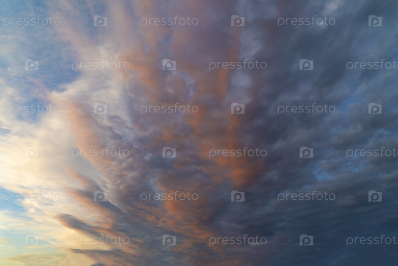 Оранжевые облачные перья на закате вечером