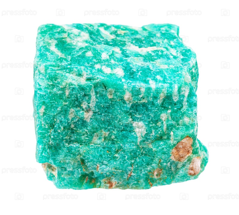Необработанная амазонитовая порода, изолированная на белом
