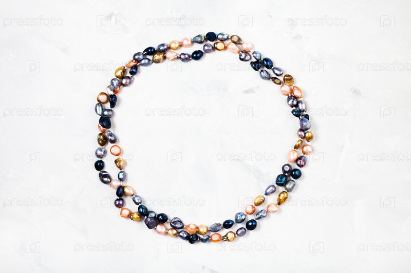 Колье из цветного речного жемчуга на сером