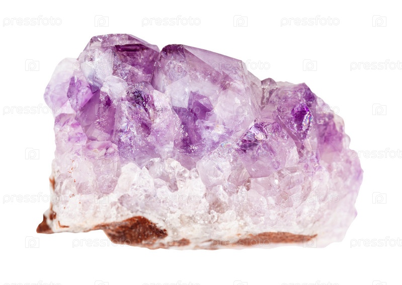 Сырая друза аметистовой породы, изолированная на белом