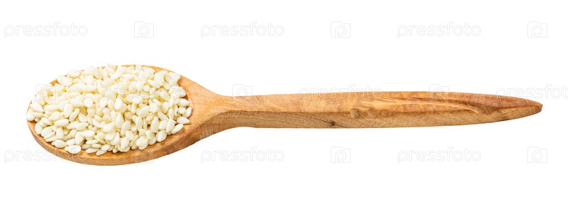 Деревянная ложка с сырыми белыми семенами кунжута
