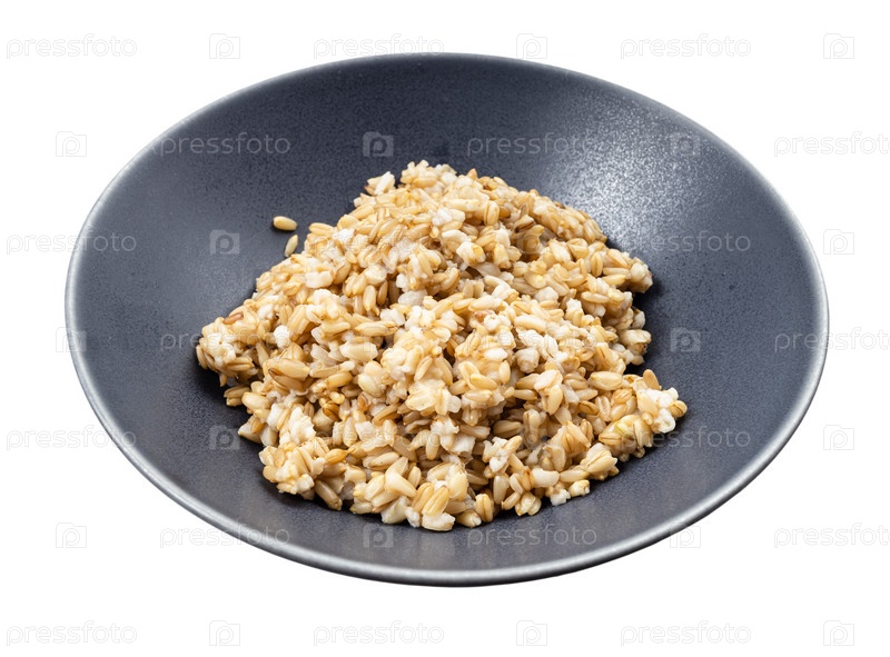 Приготовленная каша из цельнозернового овса в серой миске