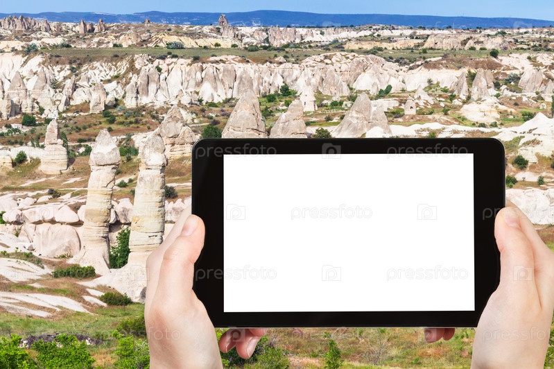 Живописный с волшебными дымоходами в Каппадокии