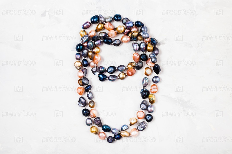 Колье из разного речного жемчуга на сером
