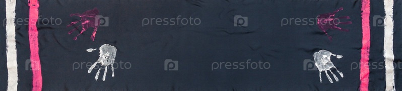 Поверхность шелкового шарфа с нарисованными вручную отпечатками ладоней
