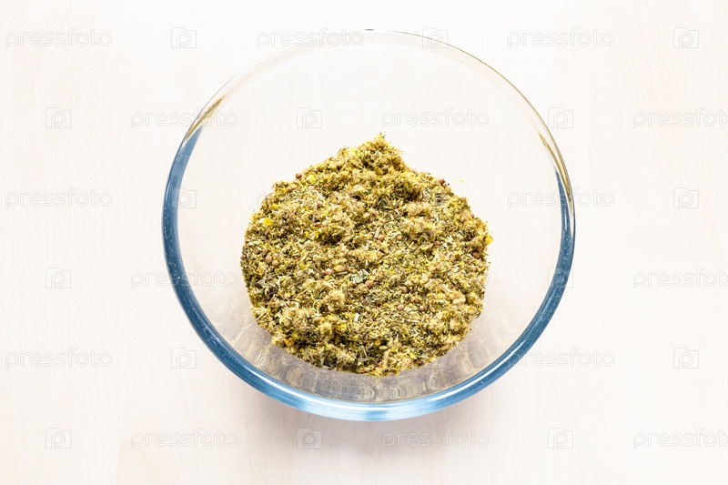 Сушеные измельченные лекарственные травы в стеклянной посуде