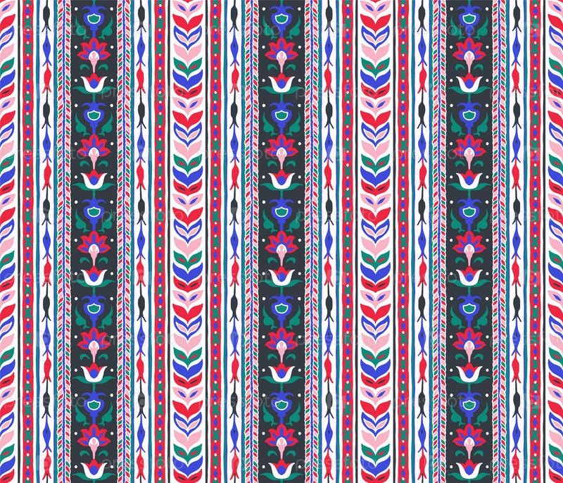 Геометрический дамасский орнамент. Икат границы. Этническая вышивка с листьями и монограммами. Племенная векторная текстура. Бесшовный народный узор в ацтекском стиле. Индийский, скандинавский, цыганский, мексиканский, африканский ковер