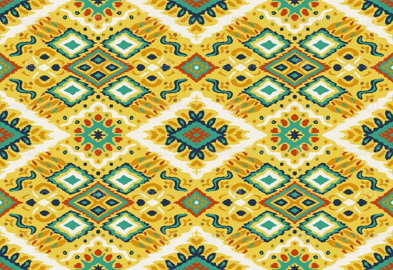 Икат геометрический фольклорный орнамент с бриллиантами. Племенная этническая векторная текстура. Бесшовный полосатый узор в стиле ацтеков. Народная вышивка. Индийский, скандинавский, цыганский, мексиканский, африканский ковер