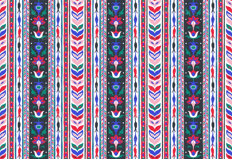 Геометрический дамасский орнамент. Икат границы. Этническая вышивка с листьями и монограммами. Племенная векторная текстура. Бесшовный народный узор в ацтекском стиле. Индийский, скандинавский, цыганский, мексиканский, африканский ковер