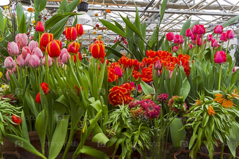Красивые тюльпаны в оранжерее Аптекарского огорода (филиал ботанического сада МГУ, Москва). Выставка "Репетиция весны", 2019 год