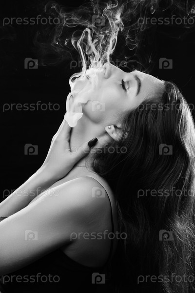 Женщина пускает дым