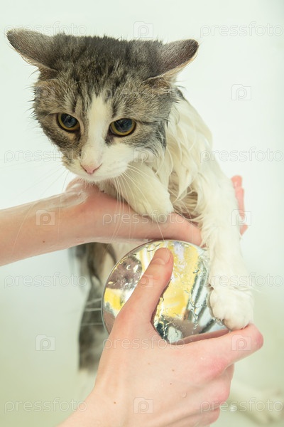 Женщина стирает кошку