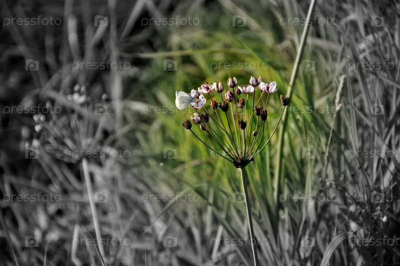 Растение Сусак зонтиковидное розовое. Фиолетовый цветок. Цветы и травы. Цветы в поле. Дикие растения
