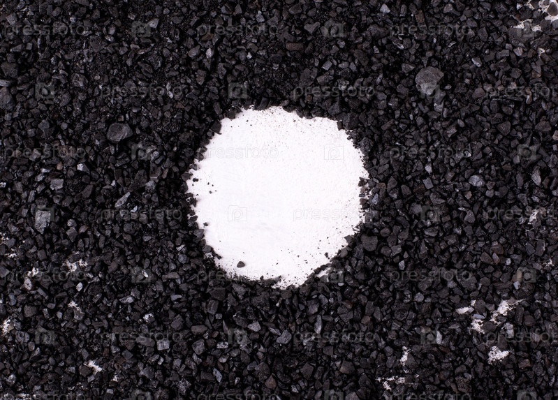 Черная лавовая соль формирует круглое пространство для копирования на белом. Вид сверху