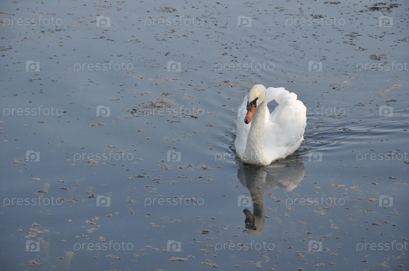 Лебедь на пруду. Плавающий лебедь. Лебедь в парке. Плавающая птица. Животное парка. Дикая птица. Лебедь белая птица