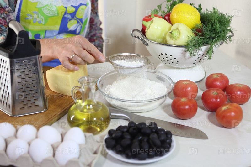 Женщина просеивает муку