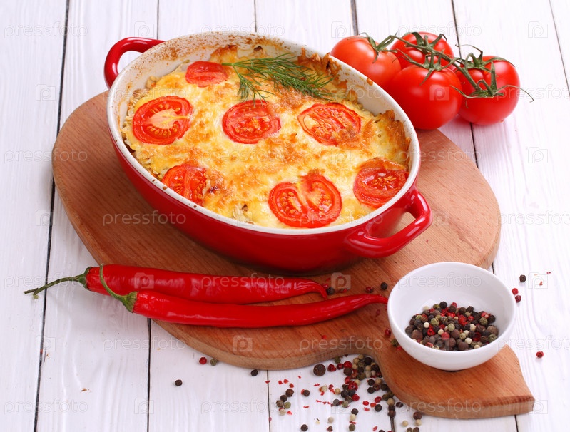 Блюдо из кабачков, запеченных с помидорами и сыром