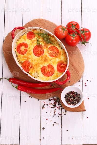 Блюдо из кабачков, запеченных с помидорами и сыром