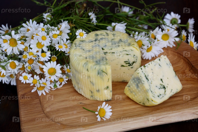 Сулугуни с укропом на деревянном фоне