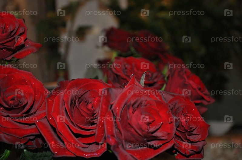 Красные розы. Букет. Розы крупным планом. Садовые цветы. Цветы и листья