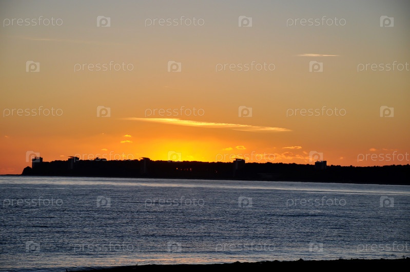 Закат в море. Морской берег вечером. Черное море. Абхазия