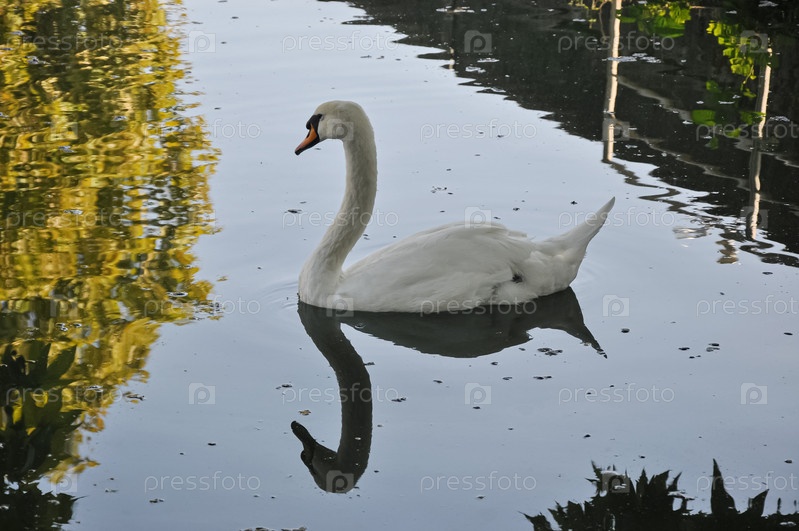 Лебедь на пруду. Плавающий лебедь. Лебедь в парке. Плавающая птица. Животное парка. Дикая птица. Лебедь белая птица