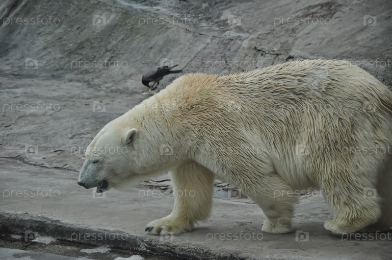 Полярный медведь. Большой белый медведь. Медведь в зоопарке. Крупное хищное животное