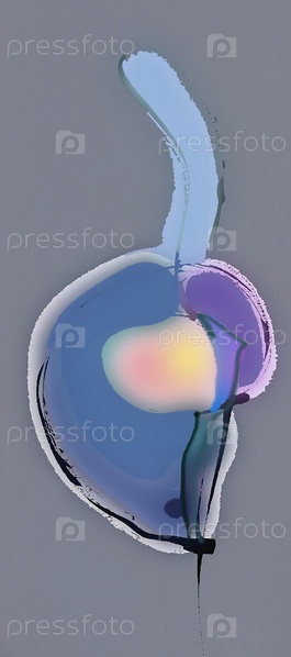 Абстрактные черные линии и цветные пятна на сером фоне. Фон в виде пятен