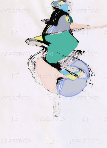 Абстрактные черные линии и цветные пятна на белом фоне. Фон в виде пятен
