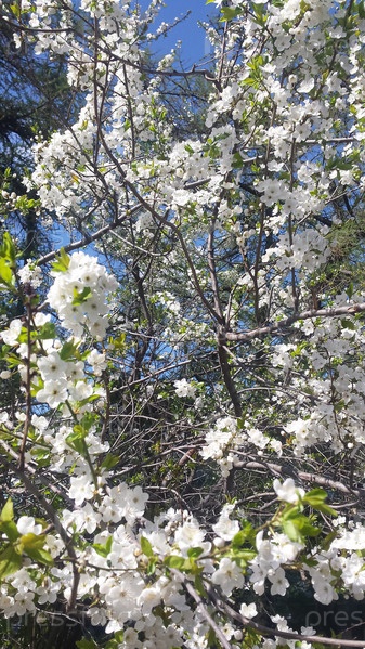 Цветущее вишневое дерево. Белые вишневые цветы и бутоны