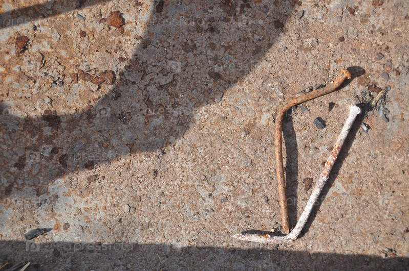 Старые гвозди на ржавой поверхности. Старый металлический оранжевый фон