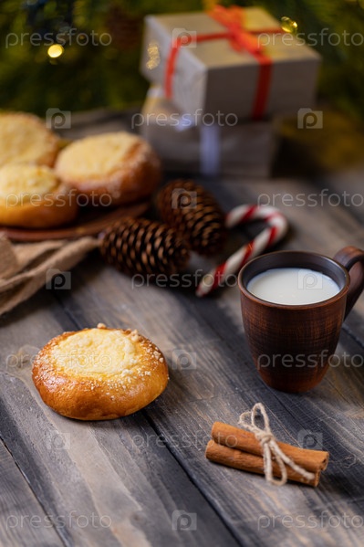 Вкусный домашний пирог с молоком на деревянном столе