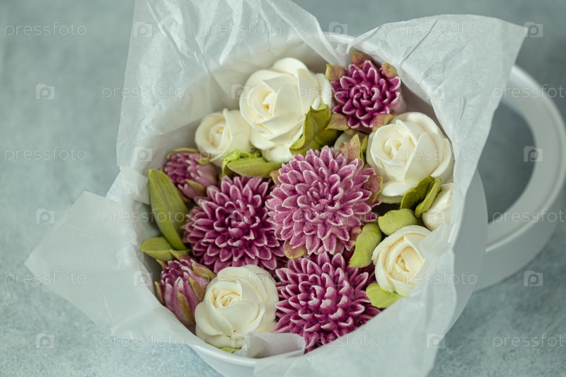 Домашний зефир в подарочной упаковке на светлом фоне, концепция праздника и необычные красивые подарки ручной работы