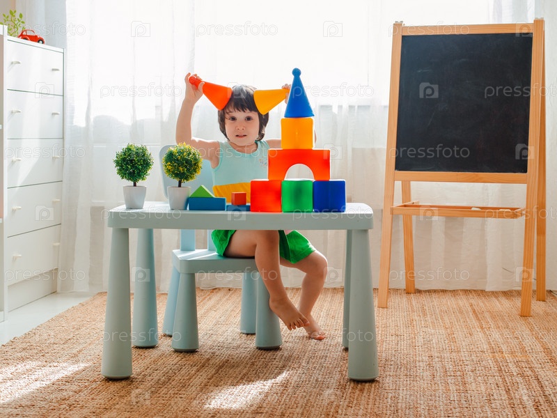 Ребенок с удовольствием играет в комнате. Дошкольное, детский сад, 3 года