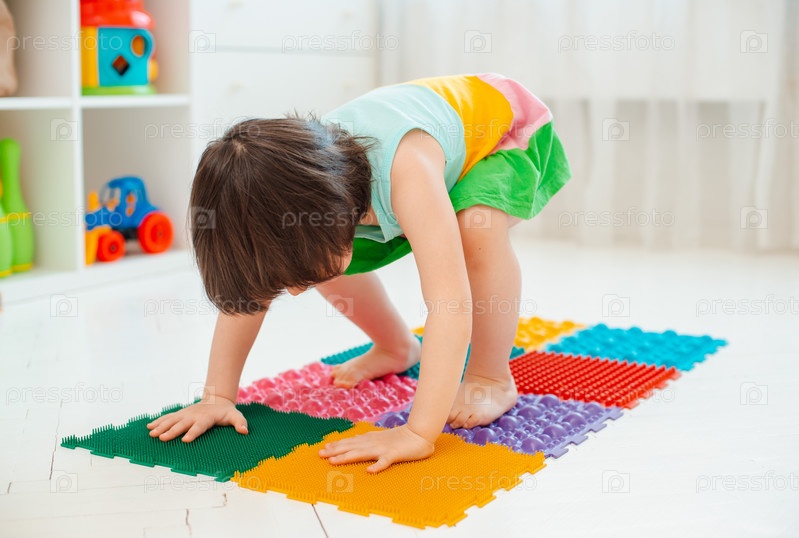 Малыш на коврике для массажа ног. Упражнения для ног на ортопедическом массажном ковре. профилактика плоскостопия и вальгусной деформации стопы