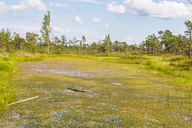 Поднятые болота и крупные губки на болоте Большого Кемерского болота в Латвии