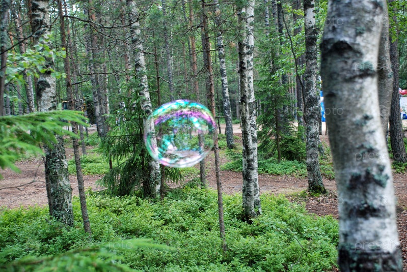 Большой мыльный пузырь в лесу