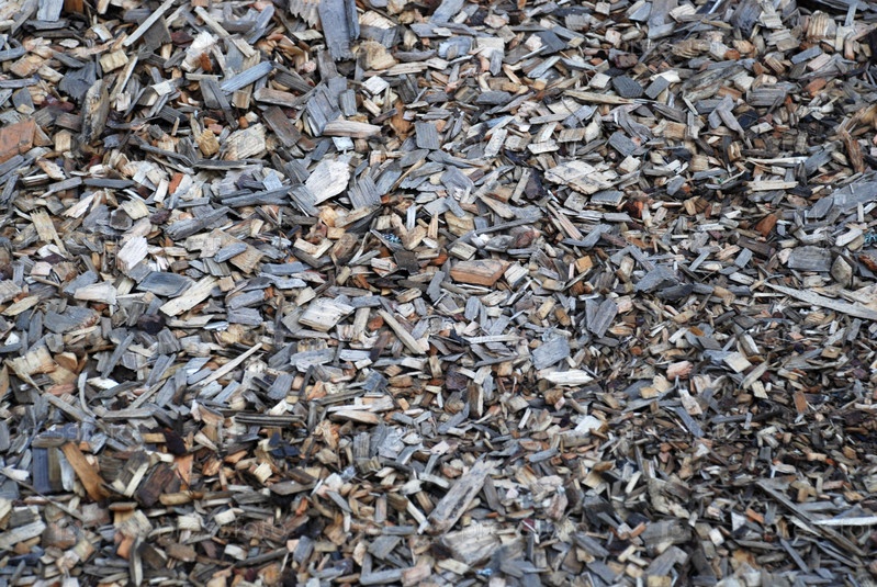 Сосновые щепки лежат на земле