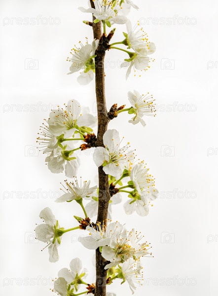 Молодой ствол сливы с цветами