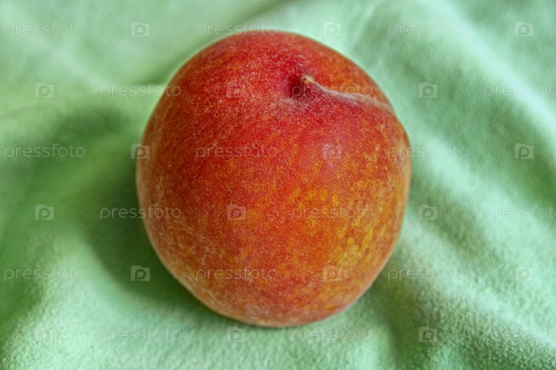 Один персик на зеленой салфетке