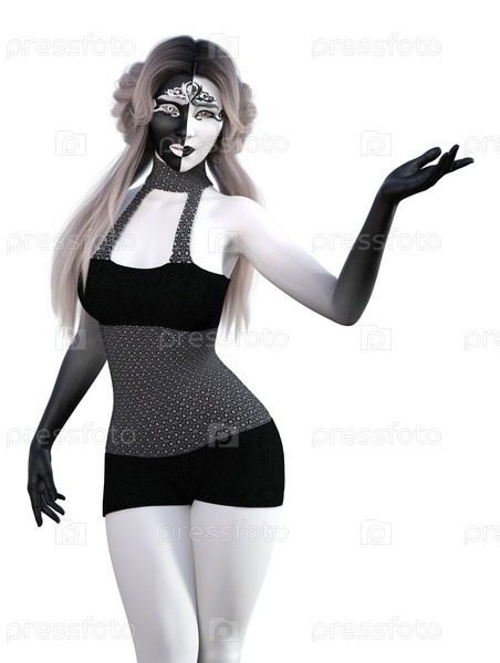 3D черно-белая женщина с цветочным макияжем