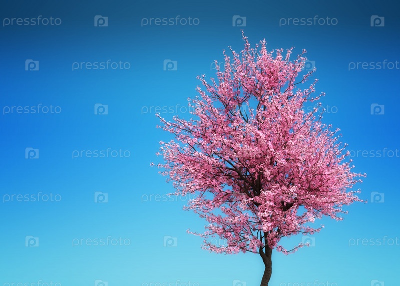 3D ветви Сакуры над синим