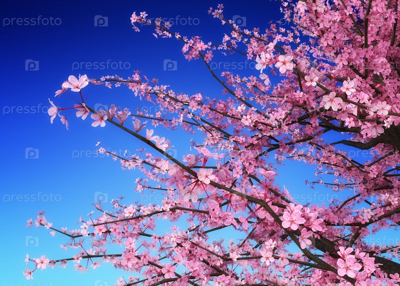 3D ветви Сакуры над синим