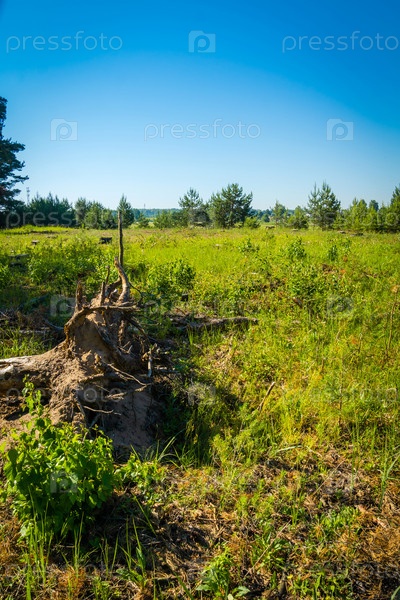 Сельский пейзаж зеленая трава и деревья