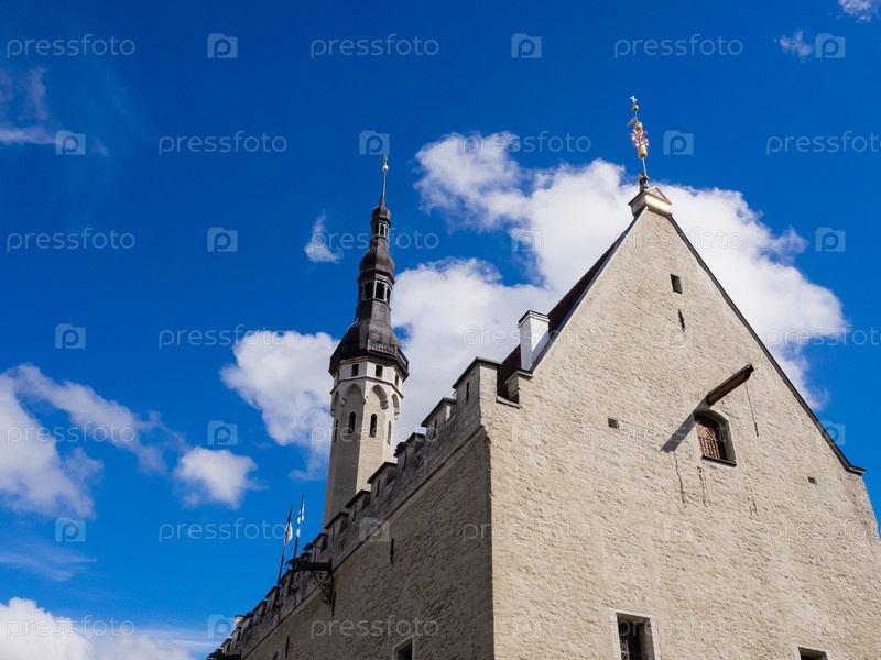 Фрагмент старого здания с крылом на крыше в Старом городе Таллинна. Таллинн, Эстония, Европа