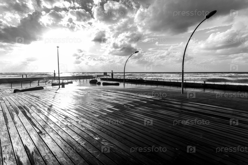 Вид на набережную Тель-Авива, Израиль, черно-белое изображение
