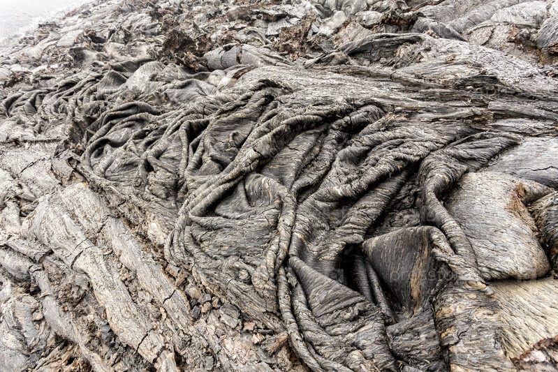 Застывшая лава после извержения вулкана. Твердый поток лавы возле вулкана Толбачик, Камчатка, Россия